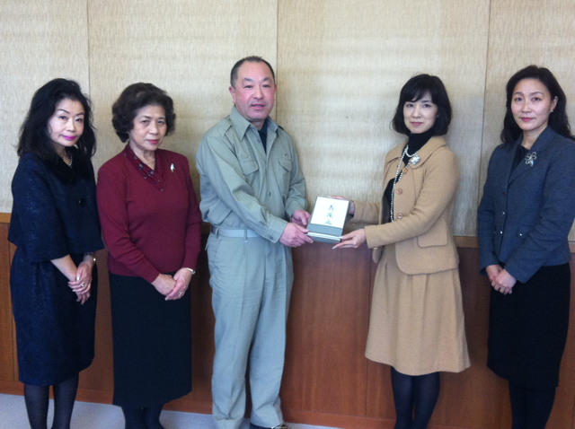 去る1月19日(木)、旧姉妹都市市民の会の副会長(*当時)4名が香取市役所を訪問しました。四街道の姉妹都市である米カリフォルニア州リバモア市からいただいた義援金を届けるためでした。 昨年3月11日に起きた東日本大震災に胸を痛めたLYSCO(リバモア・四街道姉妹都市市民の会)の皆さんから、ぜひ義援金を送りたいという申し出があり、昨年10月の四街道来市の折に、千羽鶴とともに直接頂戴しました。