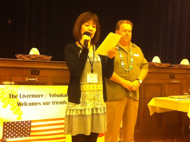 LYSCO(リバモア・四街道姉妹都市の会)会長のキース・ジェスさんから歓迎の言葉をいただき、そして訪問団の代表がお礼の言葉を述べました。