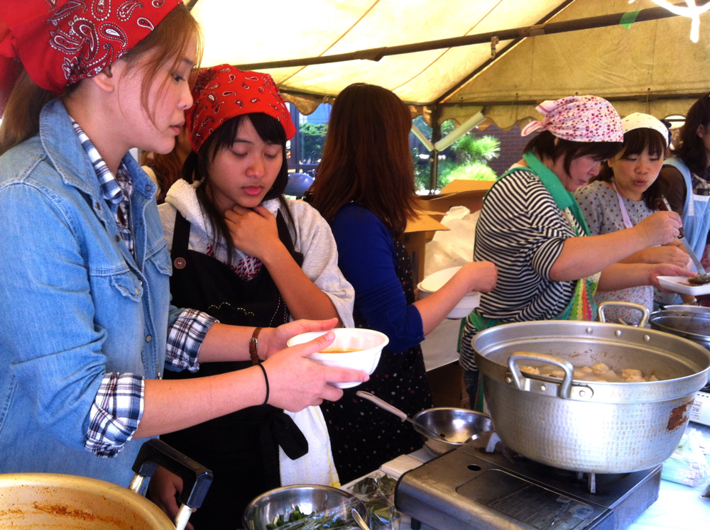 数多くの模擬店が出店するこのイベントの中でも、ひときわ人気なのがこの「ワールド・キッチン」。年に1回、しかも四街道ではここだけでしか食べられない!というお料理ばかりをご提供しているので、我も我もとドッと人波が押し寄せてくる・・・これは決して大げさな表現ではありません。