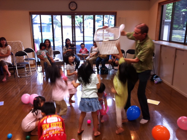 体を動かすことが大好きなKidsのツボを突いたのか、彼らのハートを一瞬でつかんでいきました。その後はもう、走ったり飛んだり跳ねたり風船が割れたりのカオス状態(笑)子どもたちは休むことを知りません。