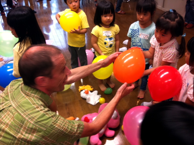 ちょっと大人(?)の5歳児だけは、途中少しの間だけ動きを止めて絵本やお絵描きをしましたが、それでも最後にデボン先生から「What color do you like?(どの色が好き?)」と聞かれて、見事に自分の好きな色の風船をもらって大はしゃぎのLittle kidsでした。