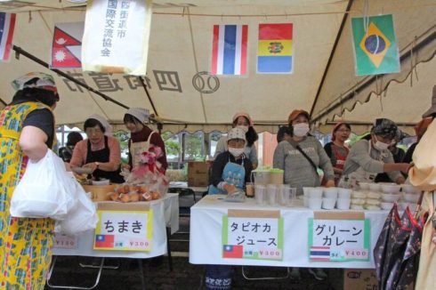 今年の料理出品国は台湾、中国、タイ、インドネシア、フィリピン、アフガニスタンの6か国で、例年より少ないですが、台湾からはスイーツも含めて7品が出され、品数としては昨年とほぼ同じでした。 ボランティア、外国人学習者とその家族や友人、会わせて50名近いメンバーが参加しました。