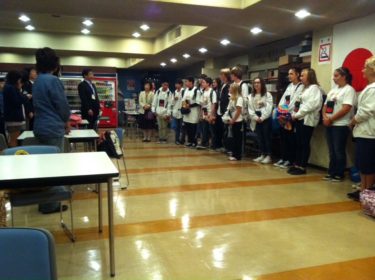 10月21日(金)午後5時過ぎ、総勢27名の短期留学生および随行者が四街道に到着。市役所食堂にてホストファミリーとの対面式が行われました。