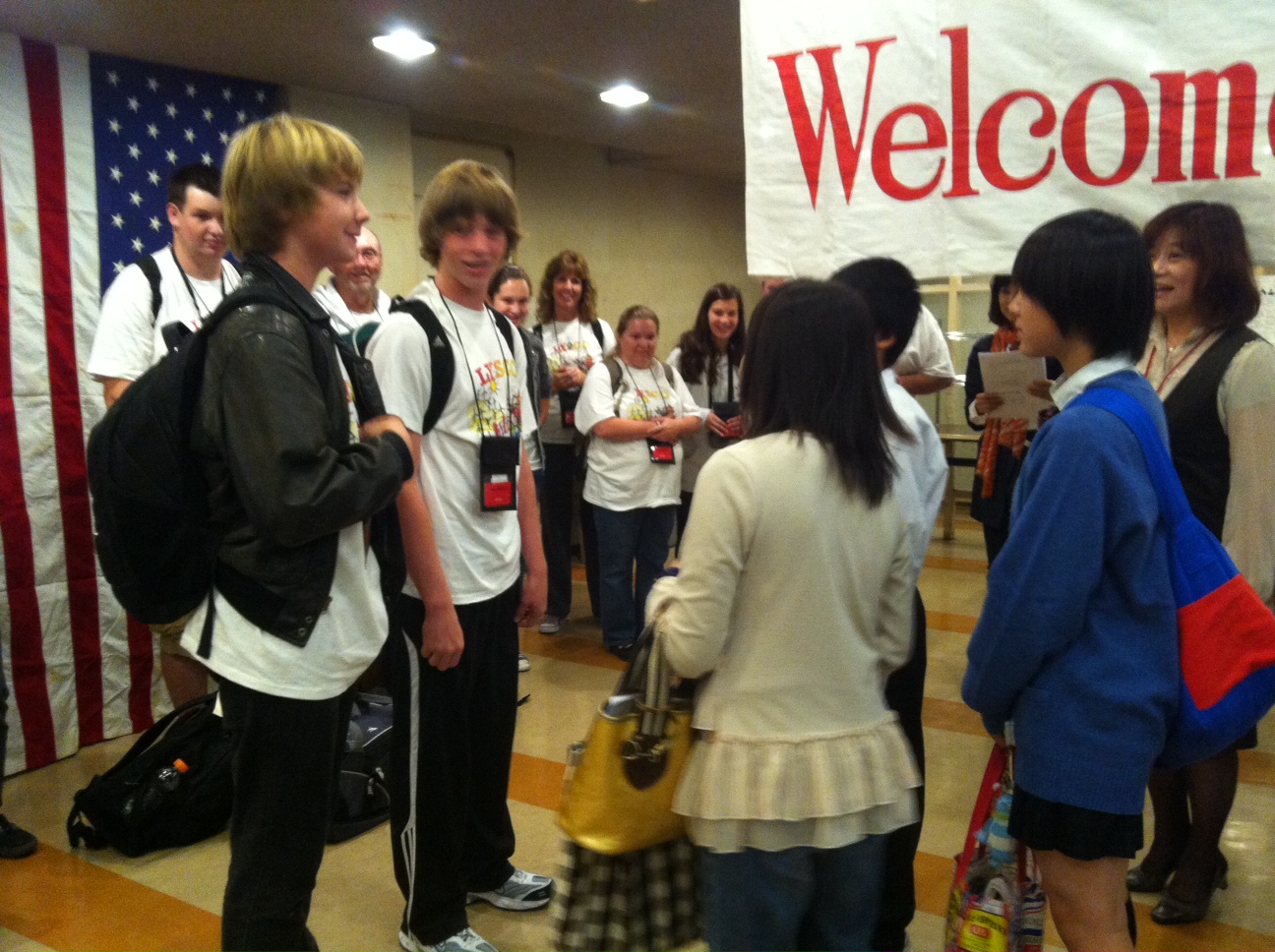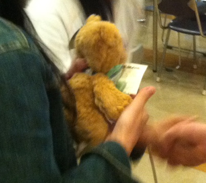 留学生の子どもたちがホストファミリーに、友好のしるしとして渡した小さな熊のぬいぐるみ。一気に距離を縮めた彼らは、その足で共に家路につきました。この翌日は歓迎式、他にも一緒に学校に行ったり、様々な日本文化を体験したり・・・の濃い1週間になると思いますが、皆さん、是非「プチ日米交流」を楽しんでくださいね!