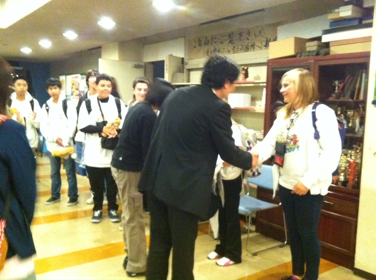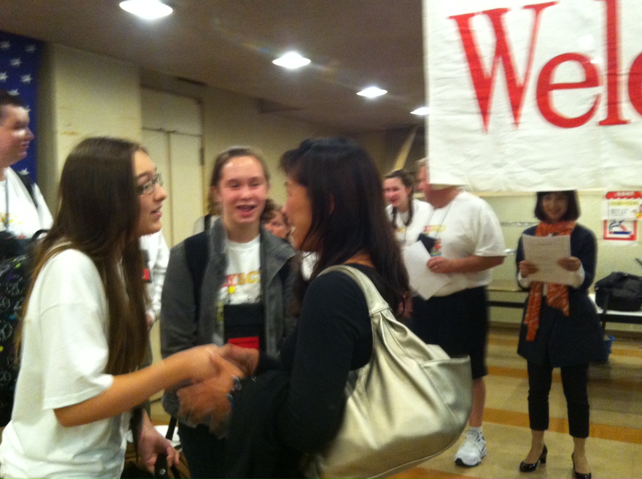 留学生とホストファミリーの名前が読み上げられ、ドキドキのご対面。でも中には上手に日本語で「初めまして」と言う子や、丁寧にお辞儀をしながら握手をする子などがいて、きちんと日本文化を勉強してきたことが伺えました。