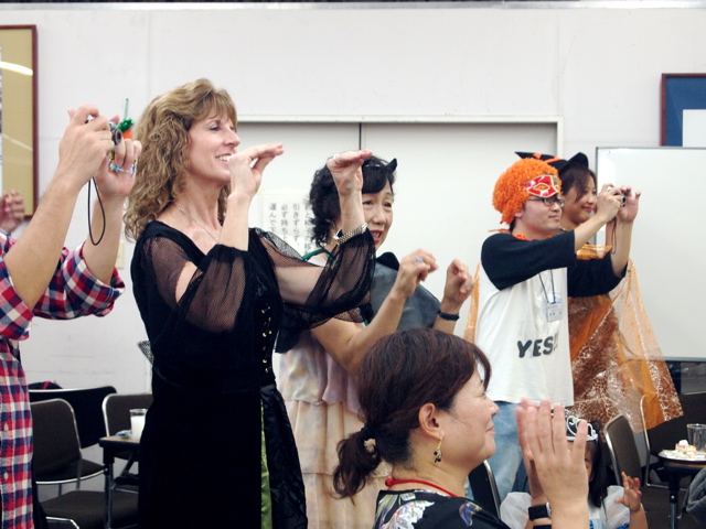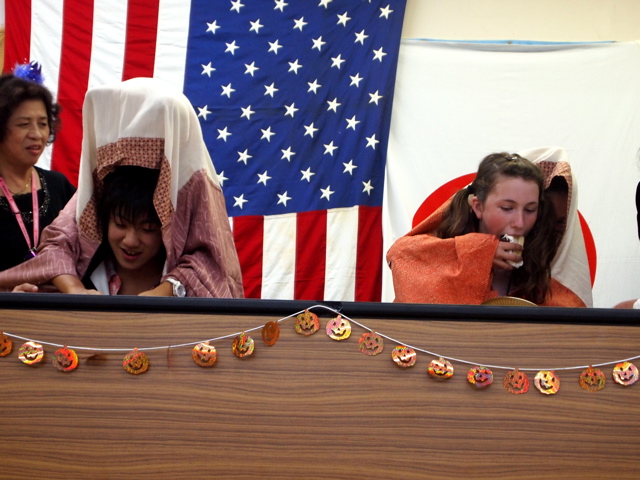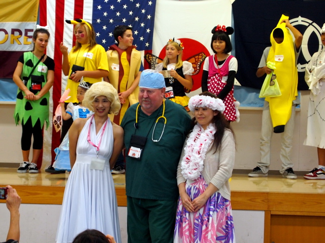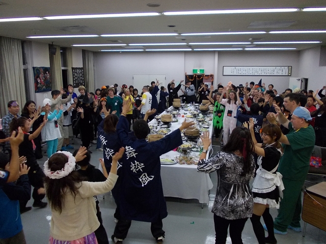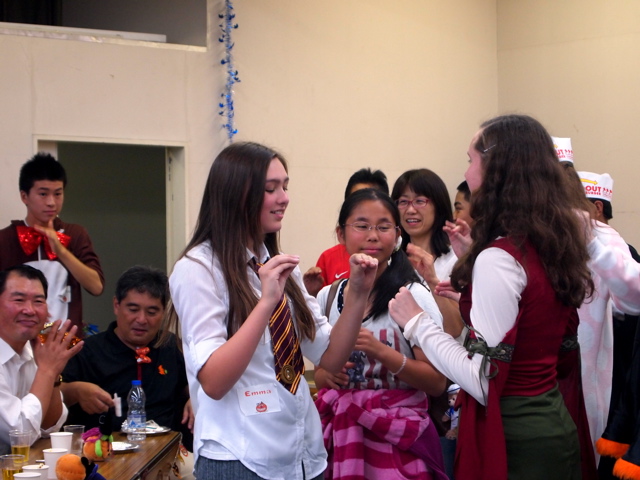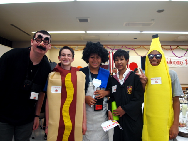 お楽しみの食事タイムが一段落した後、これまたお楽しみのショータイム!四街道のよさこいソーランチーム「舞粋風」(まいかぜ)によるド派手なパフォーマンスでJapanese Kidsの心意気を見せつけたあと(*写真は追って掲載します)、会はコスチューム・コンテストに突入。